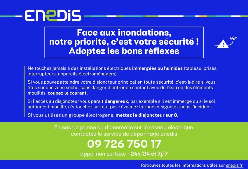 Fiche ENEDIS de Consignes de sécurité durant les inondations et le passage de la tempête Pedro