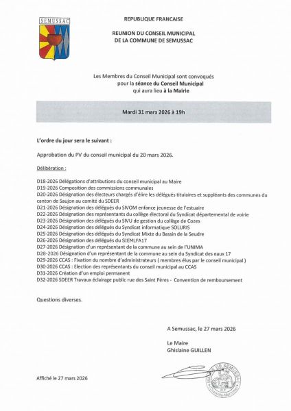 Convocation du Conseil municipal du 31/03/2026